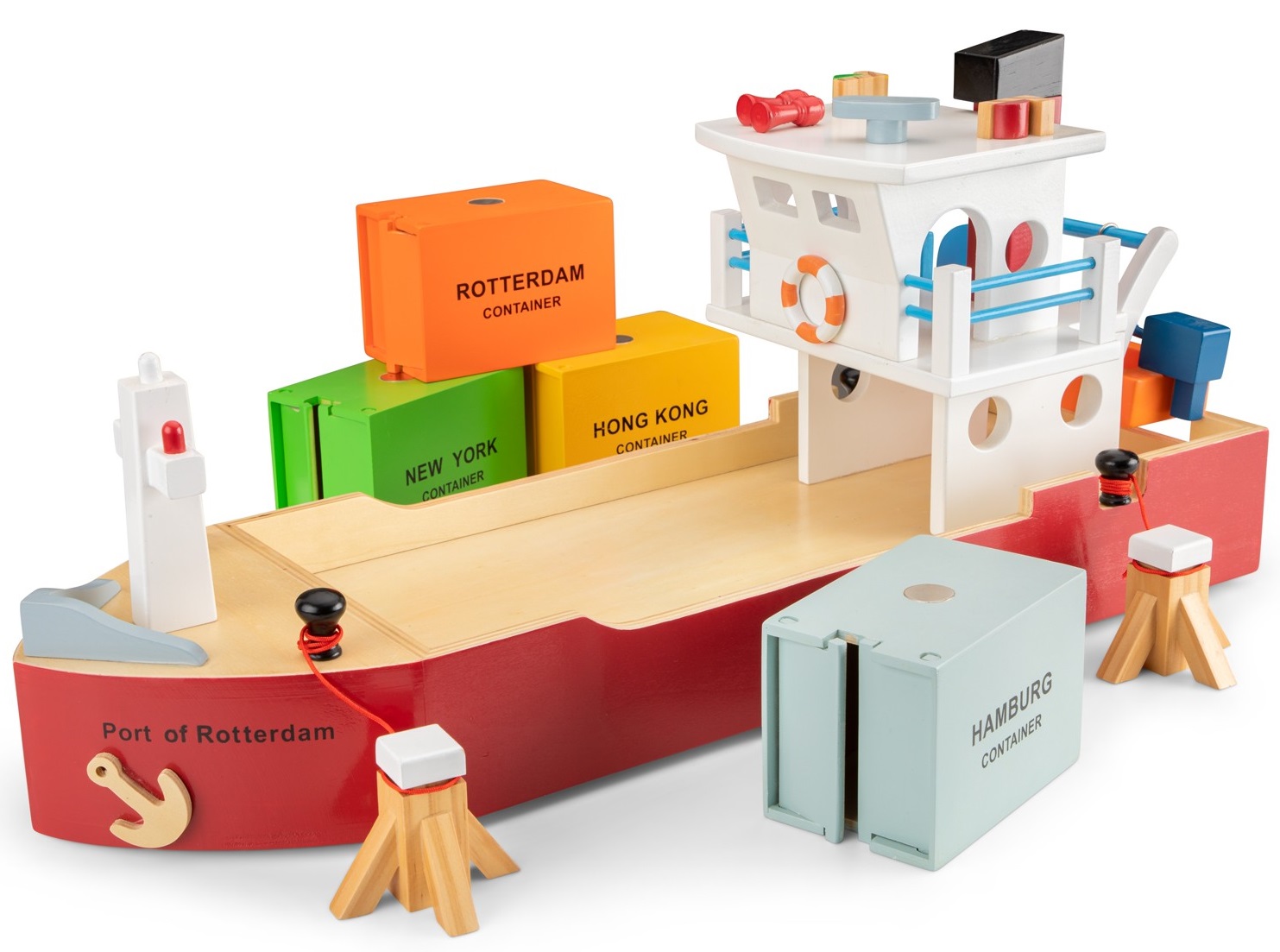 ספינת משא לילדים מעץ עם גלגלים ו 4 מכולות משא New Classic Toys