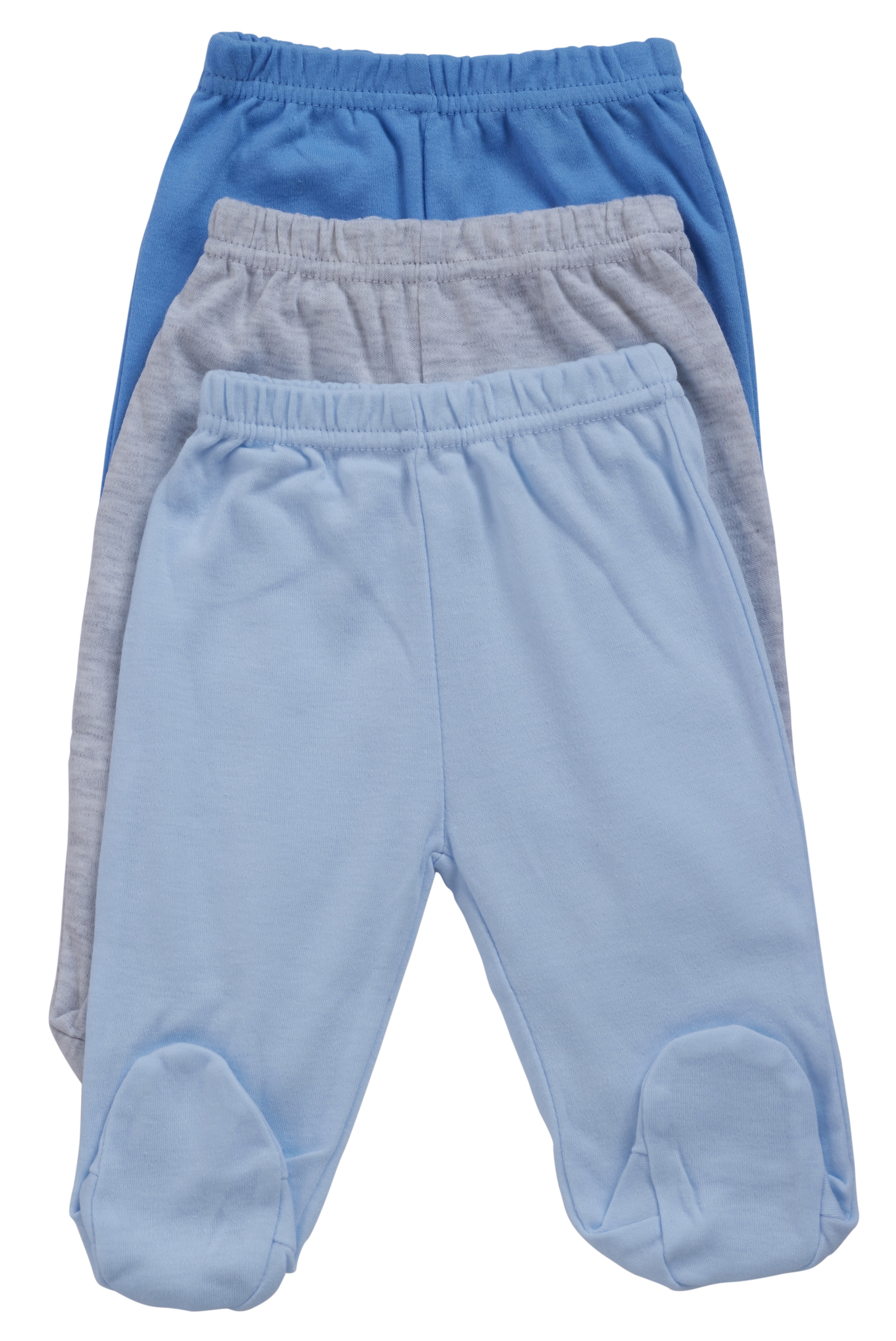 שלישיית מכנסי תינוק עם רגליות 100% כותנה 0-3 - תכלת/כחול/אפור מלאנג' לורנס