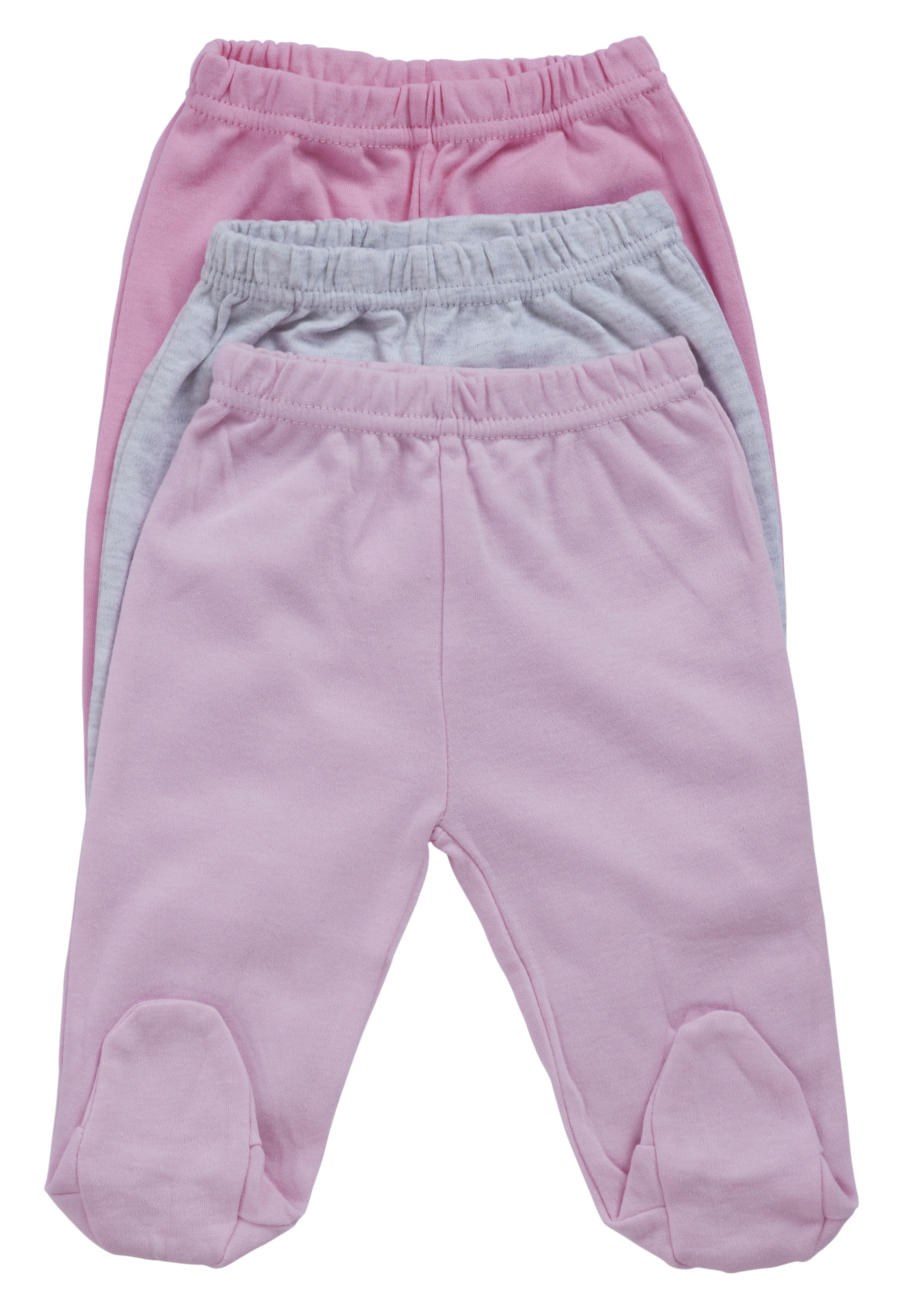 שלישיית מכנסי תינוק עם רגליות 100% כותנה NB - ורוד/ורוד בייבי/אפור מלאנג' לורנס