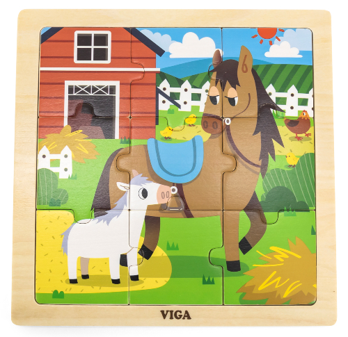 פאזל 9 חלקים מעץ עם מסגרת - סוסים ויגה