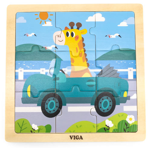 פאזל 9 חלקים מעץ עם מסגרת - ג'ירף במכונית ויגה
