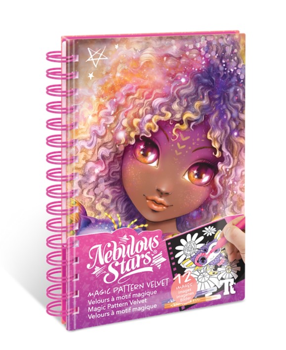 נבולוס - חוברת צביעה קטנה עם 12 לוחות קטיפה לצביעה, כולל 5 טושים צבעוניים Nebulous Stars