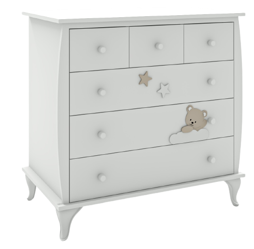 לשידת סטאר דפנות מעוגלות ועליה אלמנטים חביבים של דב, עננים וכוכבים