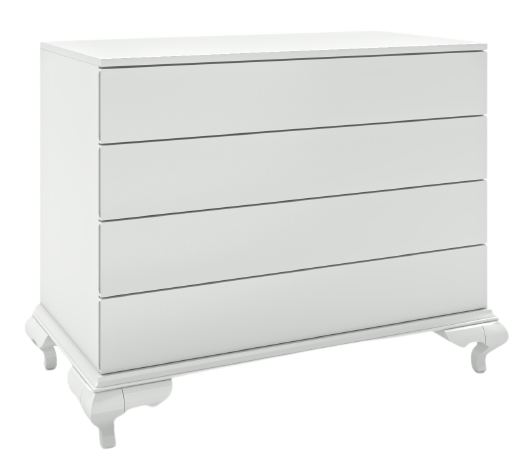 שידת תינוק רחבה דגם סטפני בעיצוב משולב – קווים ישרים בחלקה העליון ורגלי לואי מעוצבות בחלקה התחתון, השידה ללא ידיות בולטות
