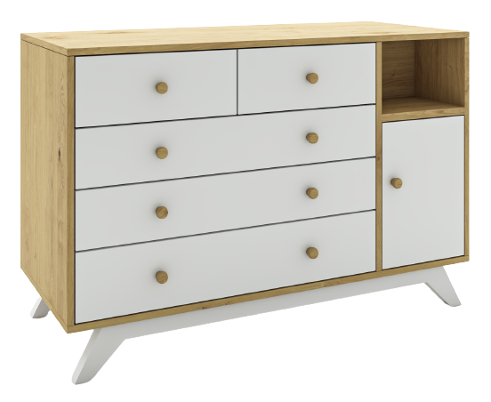 שידת תינוק רחבה במיוחד דגם סוהו - לבן בשילוב צבע עץ אלון רהיטי טל