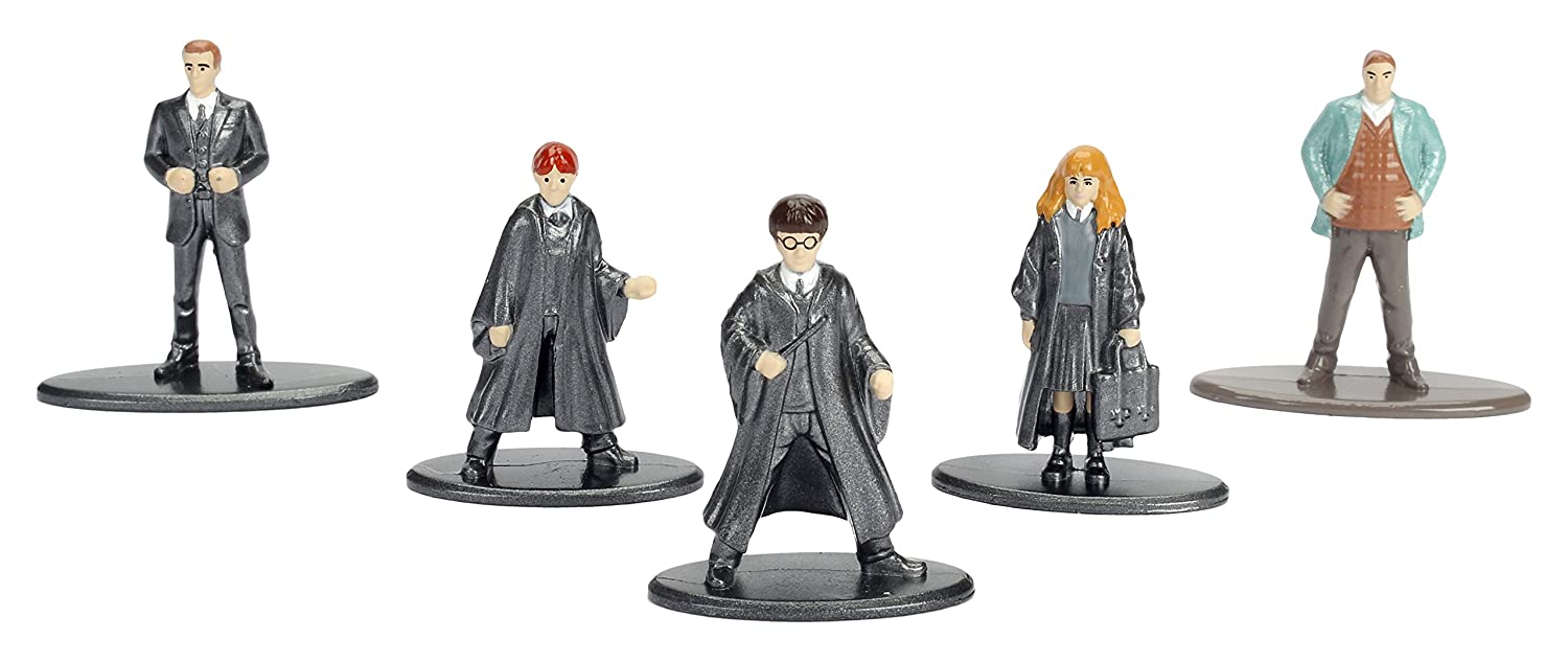 מארז 5 דמויות מתכת מיניאטוריות של הארי פוטר עם בסיס הצבה Jada