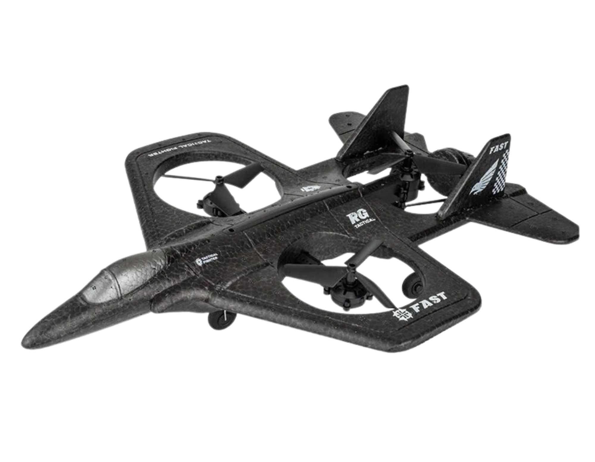 רחפן נטען בצורת מטוס קרב בעל 3 מדחפים עם מצלמת WIFI המשדרת בשידור ישיר למערכות הפעלה של אפל ואנדרואיד.