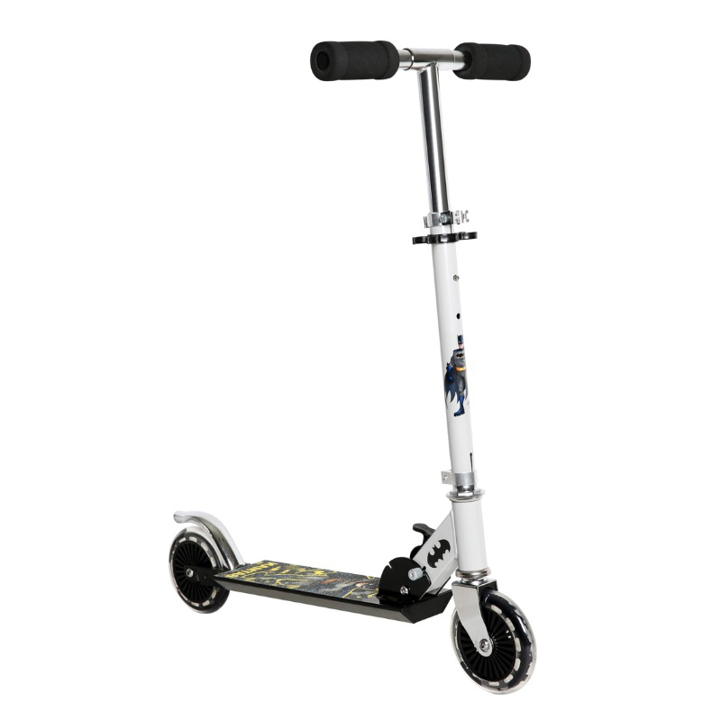 קורקינט מתקפל לילדים בעיצוב באטמן עם גלגלים בקוטר 12 ס"מ ובלם רגל אחורי.