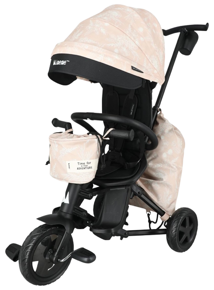 תלת אופן דו-כיווני מעוצב, עם קיפול סופר קומפקטי ו 3 שלבי שימוש - ורוד עתיק פרחוני מיננה