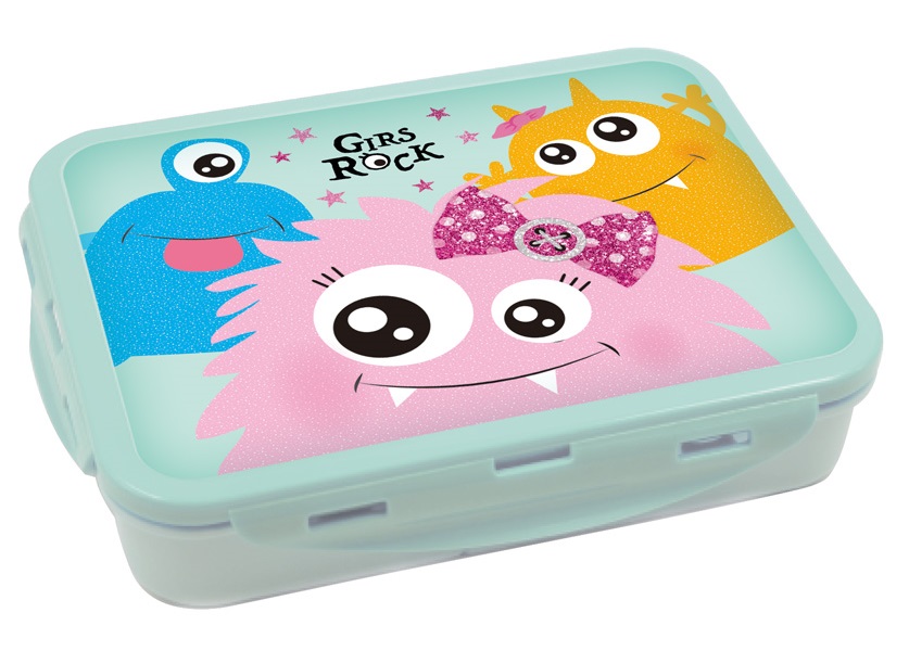 קופסת אוכל מחולקת ל 3 תאים עם נעילת קליפסים - מפלצות פלפוט