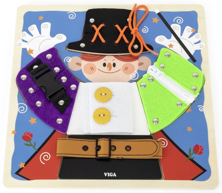 לוח פעילות מונטסרי מיומנויות הלבוש מעץ בעיצוב קוסם ויגה