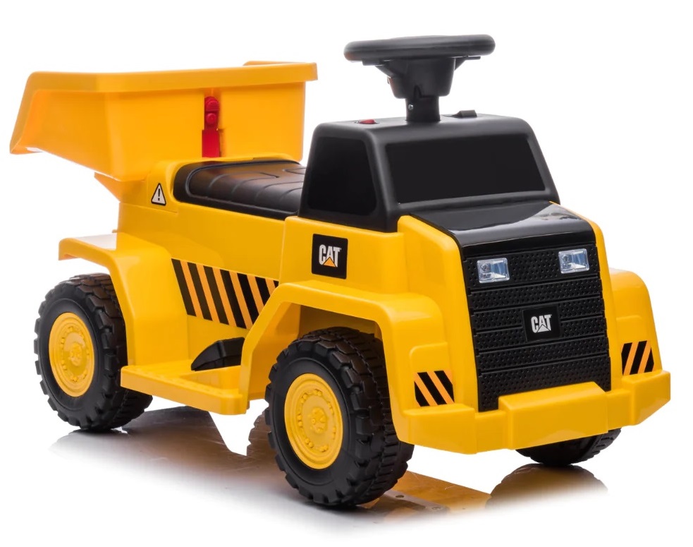 בימבה משאית עפר CAT ממונעת 6V לפעטות עם ארגז מתרומם ואפקטים קוליים בעברית I am Toys