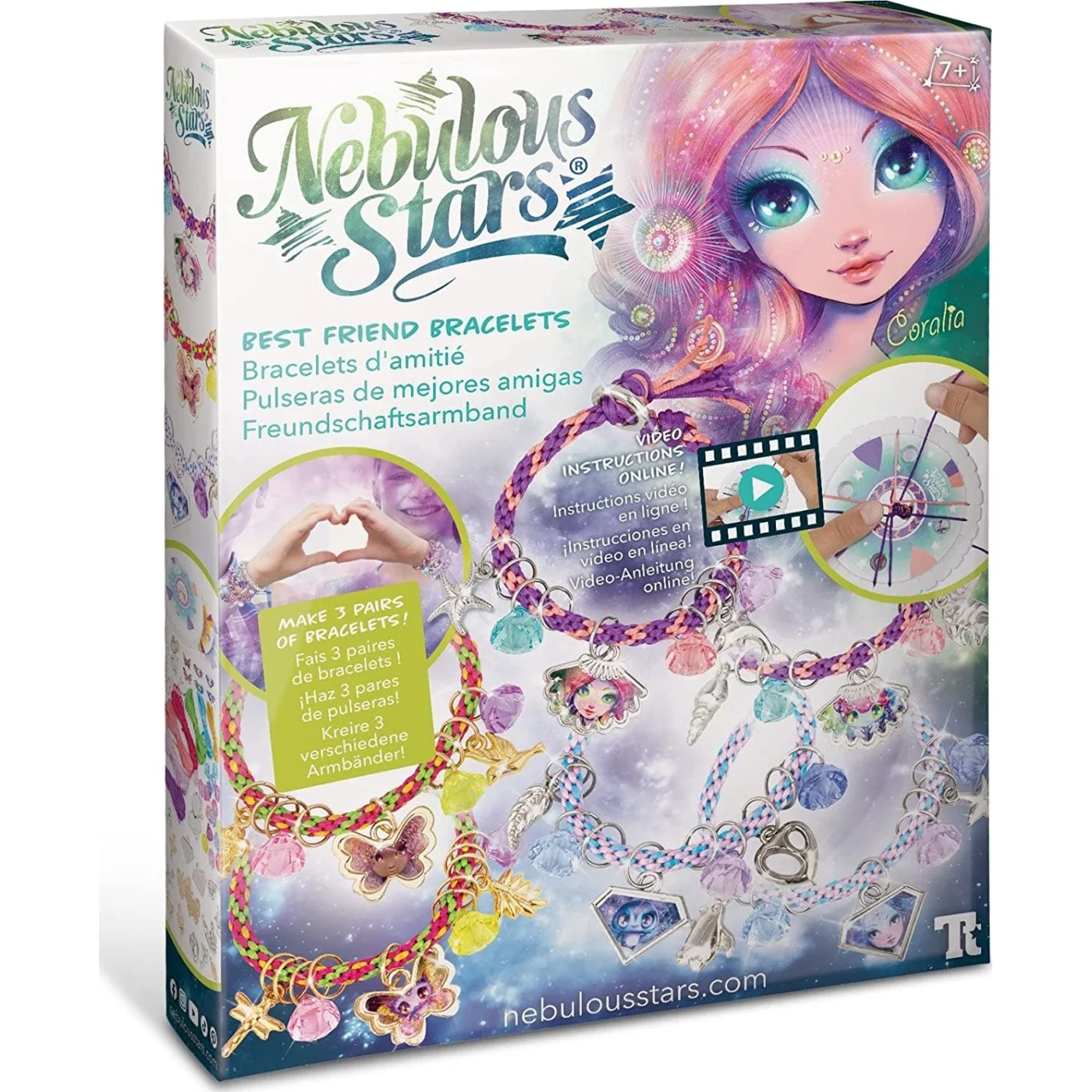 ערכת יצירה להכנת 3 זוגות של צמידי חברות עם קמעות ואבנים מנצנצות Nebulous Stars