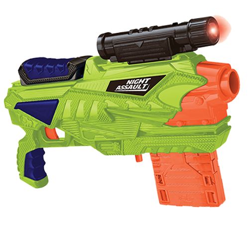 טען, כוון וירה: כשאתה בלהט של קרב יריות צעצוע, השתמש ב-Air Warrior Night Assault Blaster כדי לנצח בכ קרב
