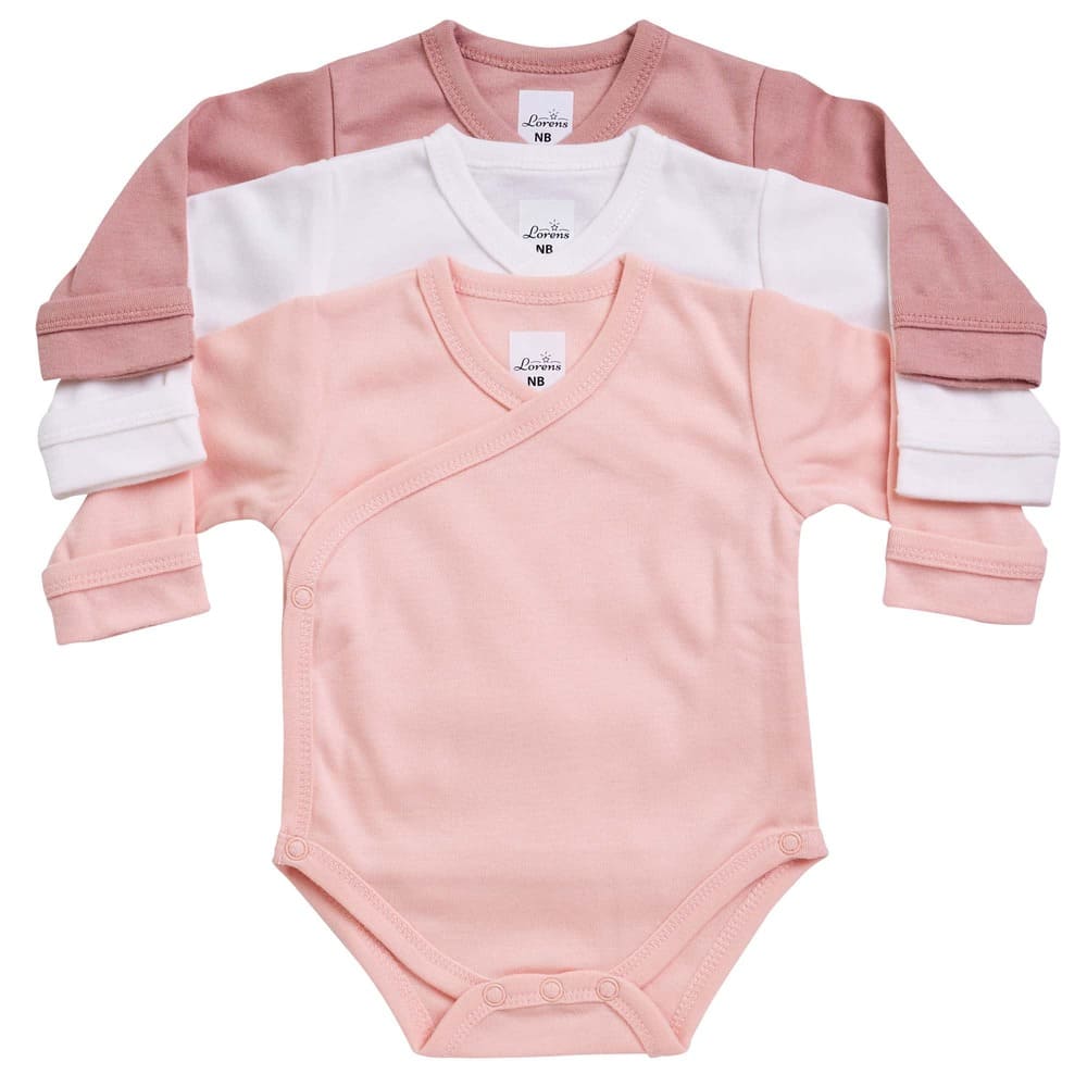שלישיית בגדי גוף מעטפת פלנל עם שרוול ארוך 100% כותנה NB - ורוד עתיק/אפרסק/קרם לורנס