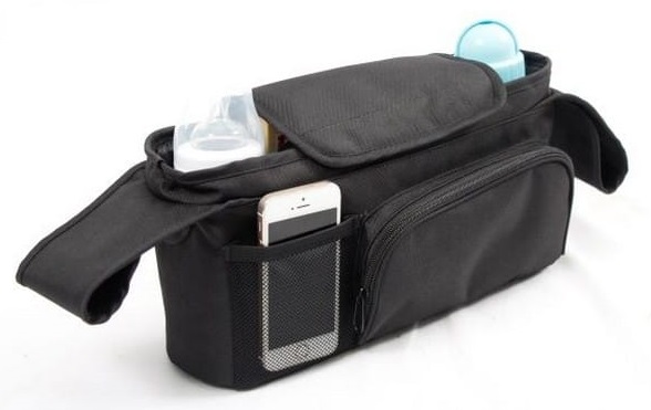 ארגונית לעגלת תינוק או טיולון עם תא קדמי ותא לטלפון - שחור Bambino king