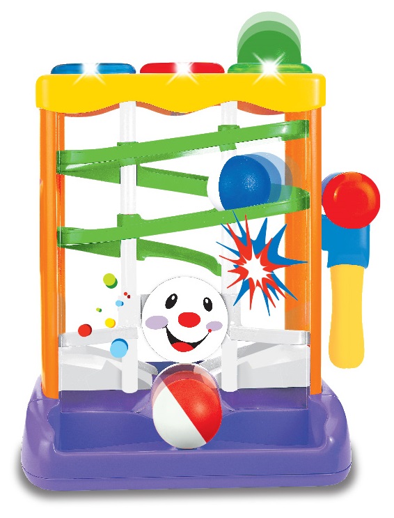 הכו עם הפטיש בכדורים על מנת שיפלו במורד השיפוע, וגלו תגמול משעשע של אורות וצלילים.