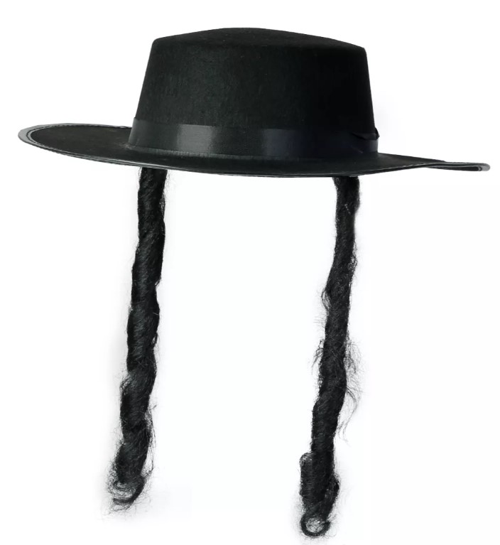כובע חסיד בצבע שחור ופאות באורך של כ-25 ס"ח