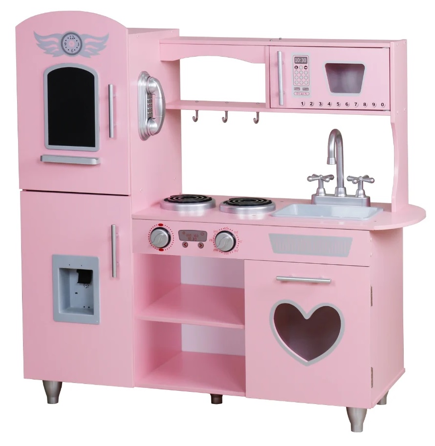 מטבח ילדים עשוי עץ MDF עם כיור וברז מזרימים מים, מיקרוגל, תנור, כיריים וטלפון