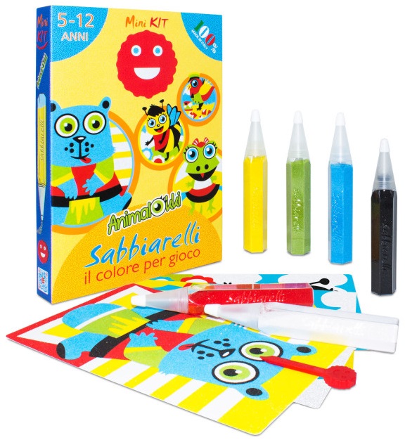 ערכת יצירה לילדים: 4 ציורי חיות ו 6 עטי חול צבעוניים Sabbiarelli