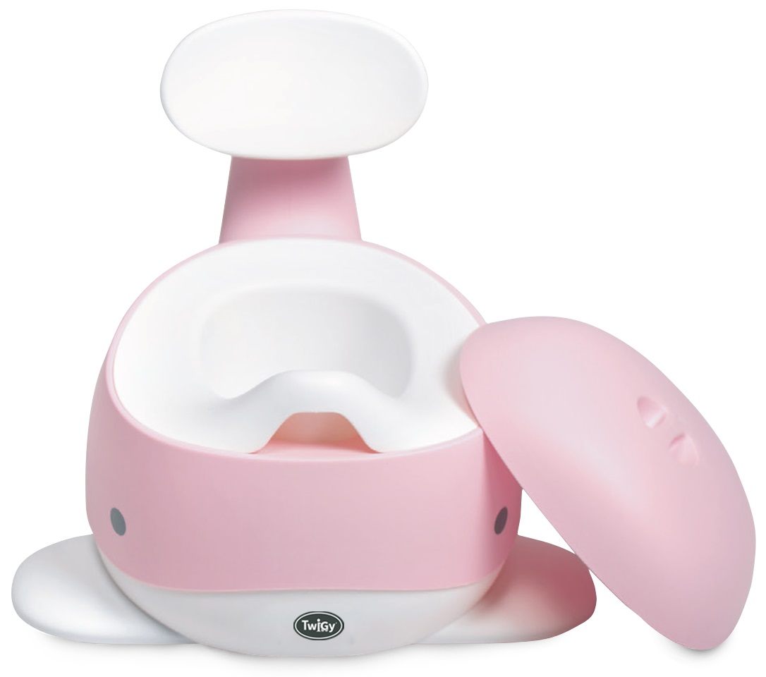 סיר גמילה בצורת לוויתן עם מכסה, משענת ומגן מונע התזה - ורוד Twigy