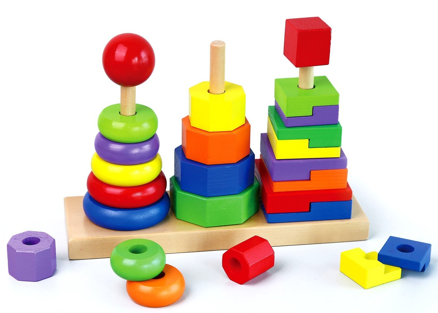 שלושה מגדלי בניה והשחלה גיאומטרים צבעוניים 26 חלקים ויגה