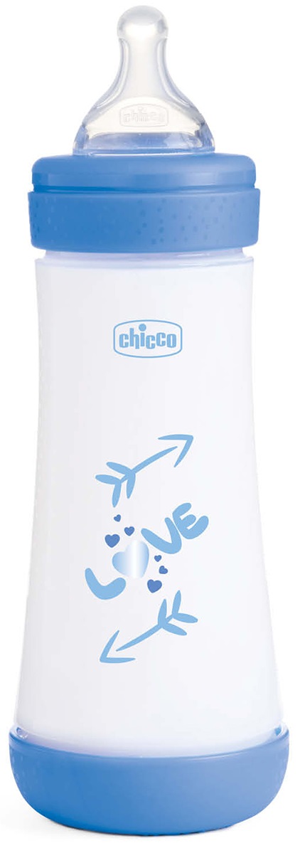 בקבוק לתינוק פרפקט 5 Perfect עם תחתית נושמת להפחתת גזים 300 מ"ל זרימה מהירה - כחול LOVE צ'יקו