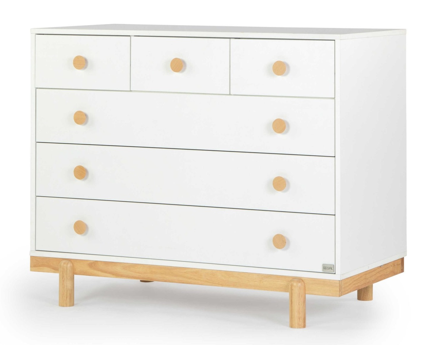 שידה ברוחב 120 ס"מ עם אחסון מירבי בצבעוניות משולבת של גוף לבן עם רגליים וידיות עשויות עץ טבעי מבית רהיטי סגל