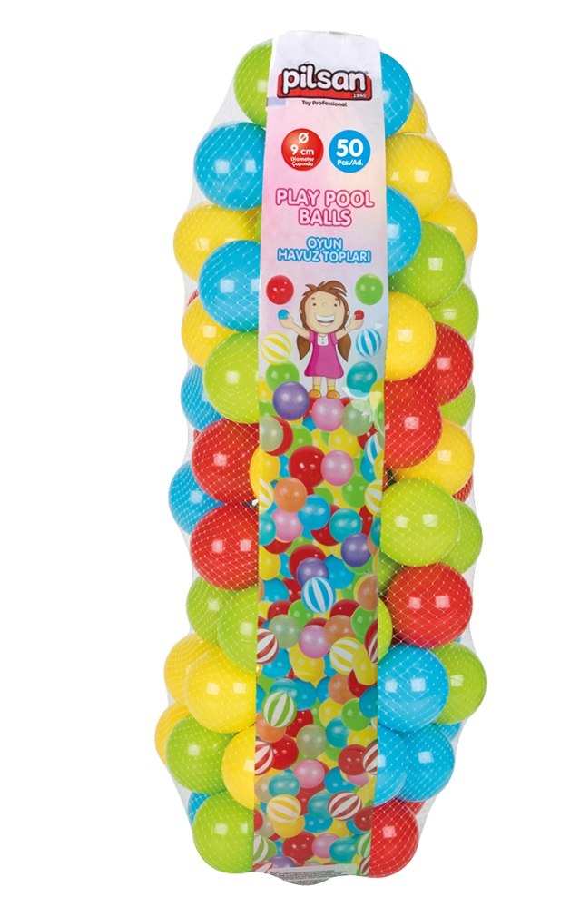 50 כדורים צבעוניים, איכות AAA בגודל 9 ס"מ לאוהל/בריכה pilsan