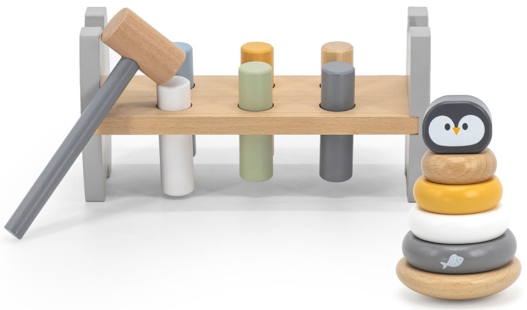 סט מגדל טבעות 6 חלקים + הך פטיש 6 פינים עם פטיש מעץ מלא - פינגווין PolarB