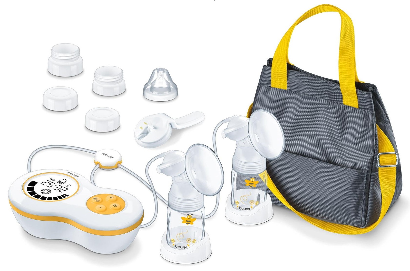 משאבת חלב כפולה BY70 עם 10 עוצמות שאיבה, מסך LCD לשליטה ובקרה, אפשרות הפעלה עם סוללות Beurer