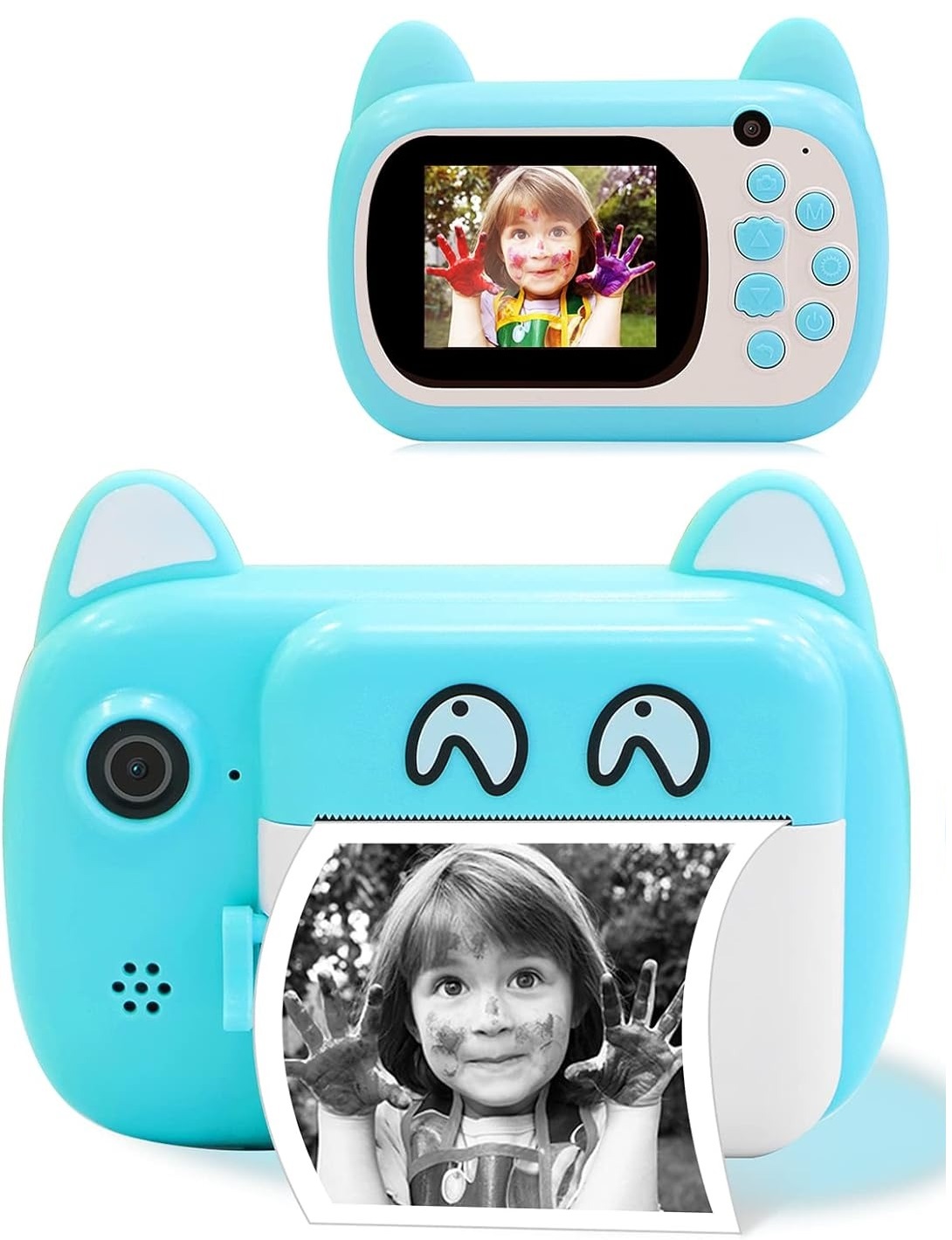 מצלמה דיגיטלית מדפיסה לילדים עם וידאו, מסך "2.4, צילום HD ו 3 סלילים להדפסה - כחול טוילנד