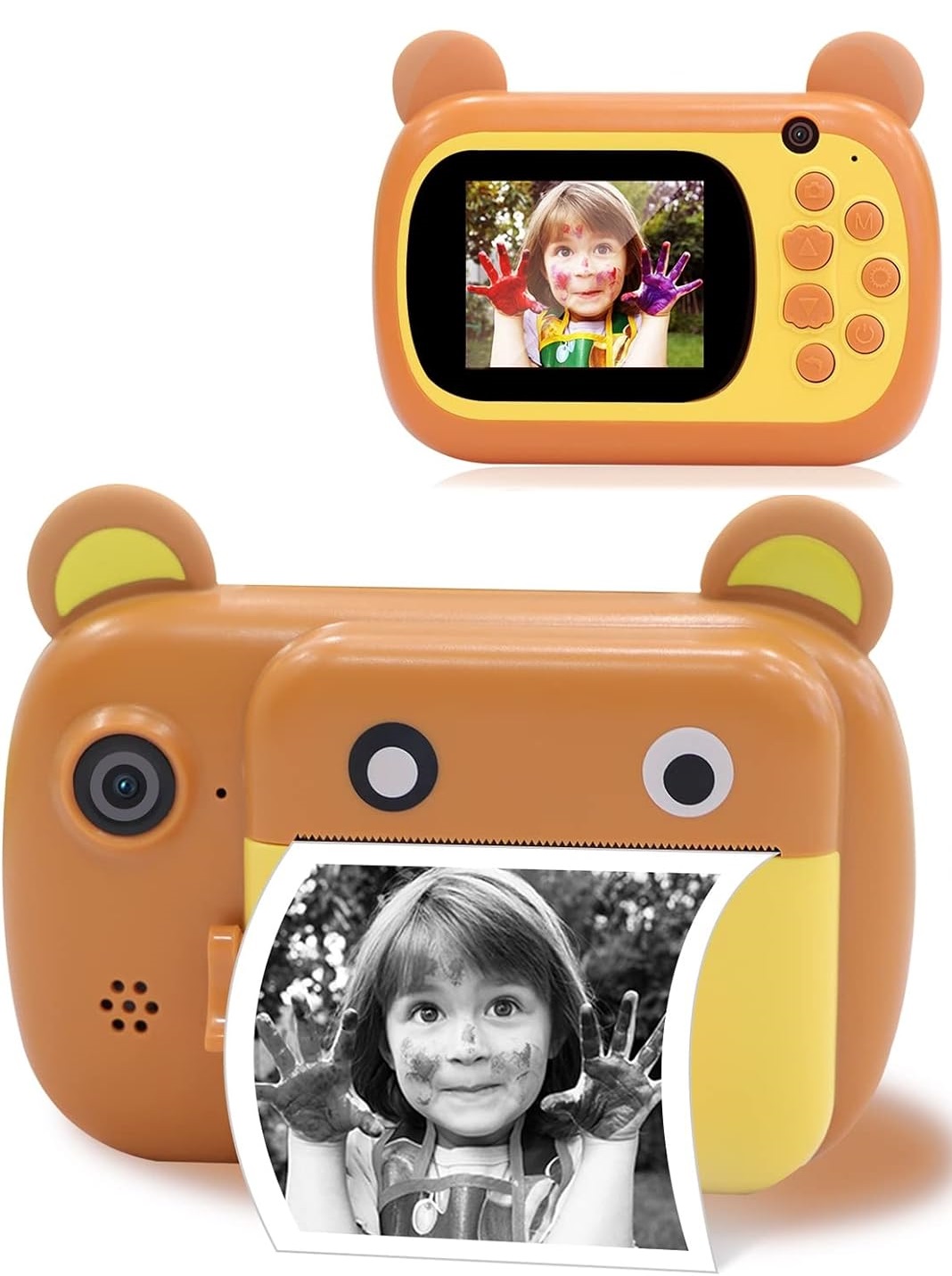 מצלמת ילדים זו משתמשת בטכנולוגיית מדפסת תרמית, המאפשרת לכם לצלם ולהדפיס את התמונה, בשחור-לבן תוך שניה אחת בלבד בלחיצת כפתור. בעזרת עיצוב משודרג עם שתי מצלמות, היא מאפשרת לילדים לצלם תמונות או סלפי בקלות.