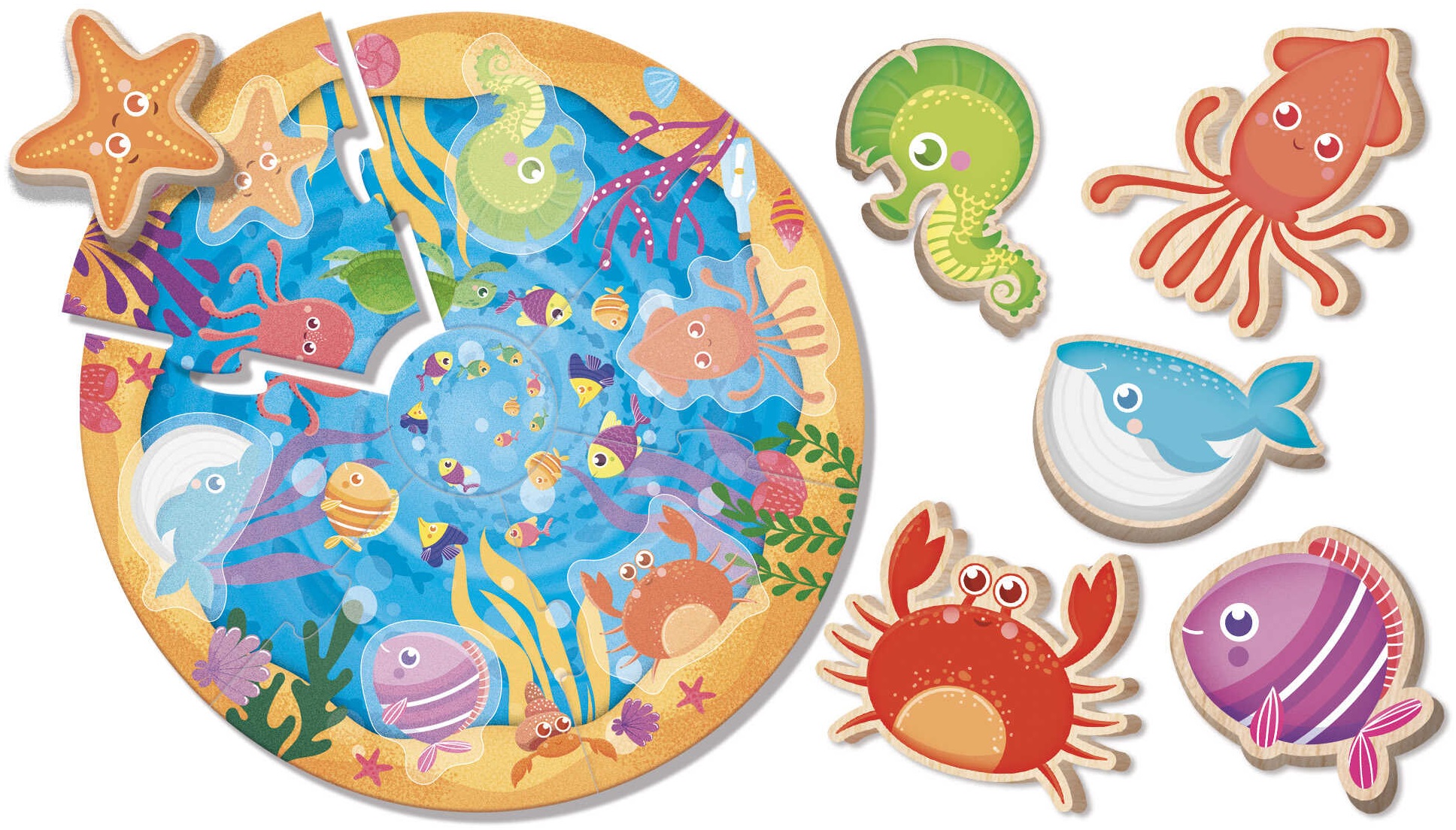 פאזל עגול "חפש ומצא" חיות הים עם 6 דמויות חיות ים מעץ 13 חלקים LISCIANI