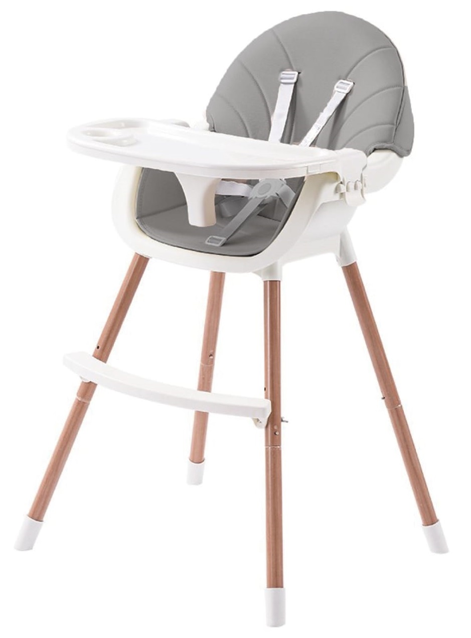 כיסא אוכל 2 ב 1 עם ריפוד דמוי עור קל לניקוי דגם רוי - לבן/אפור Baby Queenix