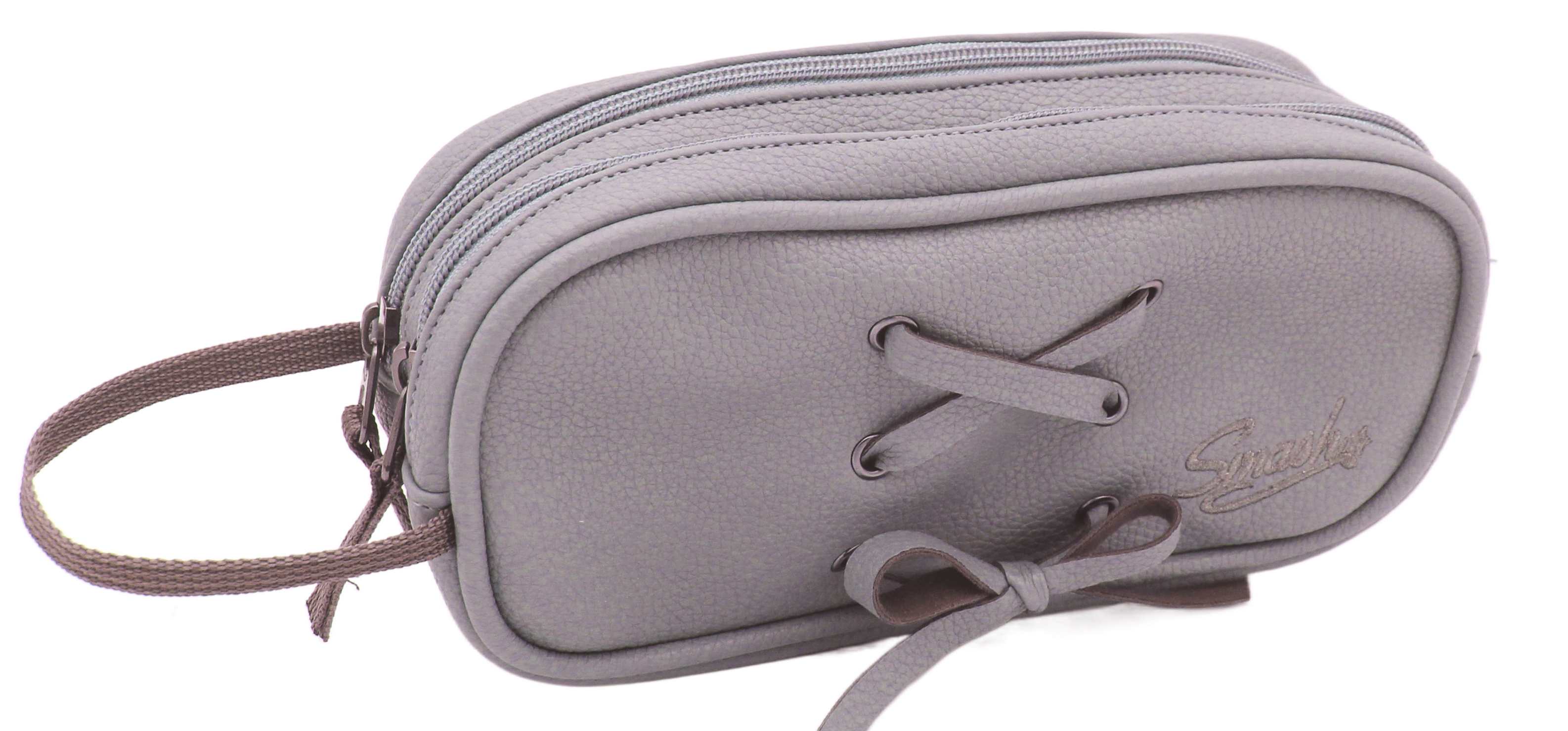 קלמר שני תאים - דמוי עור שרוך אפור סמאש