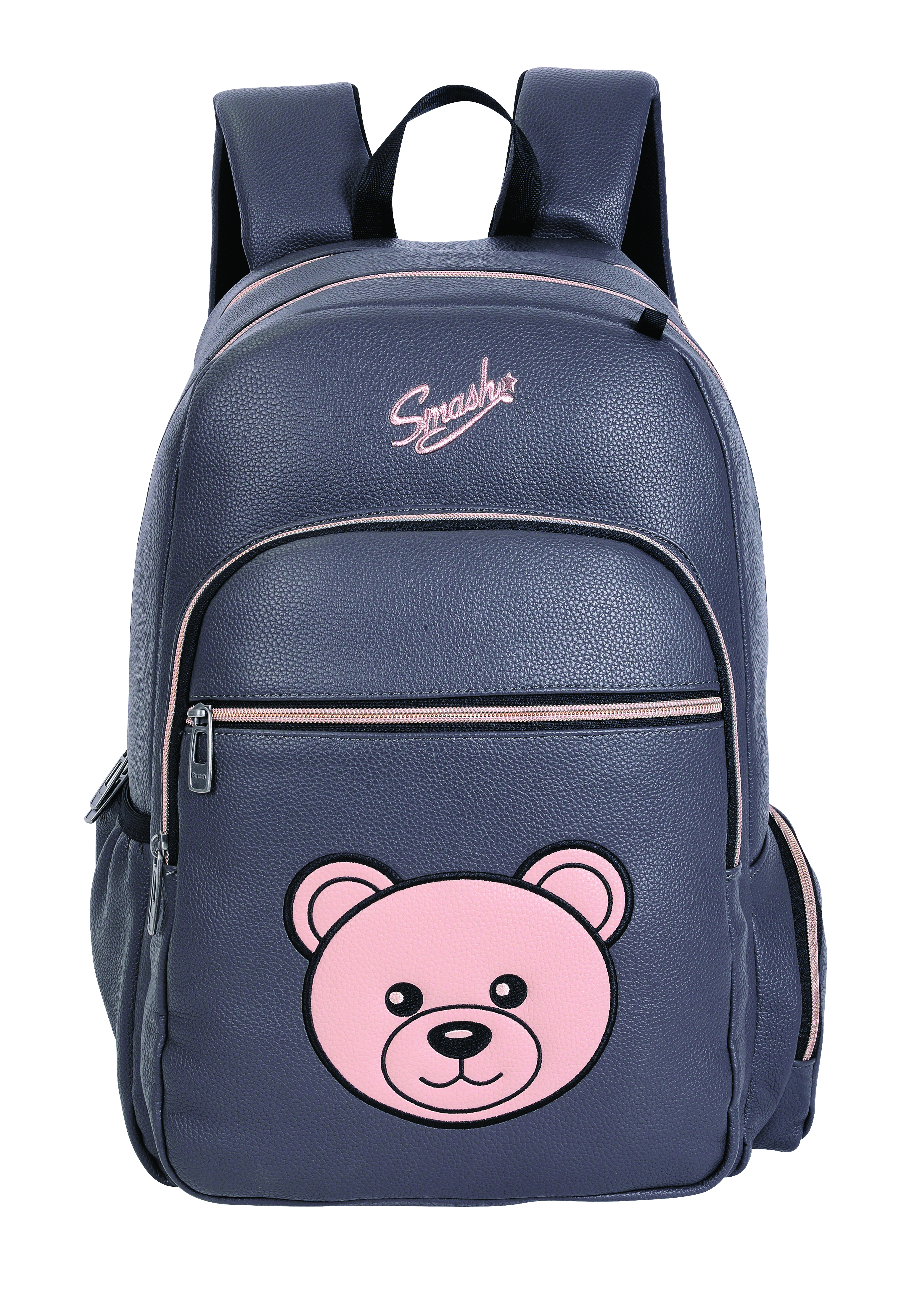תיק גב אפנתי לנוער עם גב קשיח אורטופדי, ארבע תאי חלוקה, שני תאי צד ותא נגד גניבות - שחור דובי רוז גולד סמאש