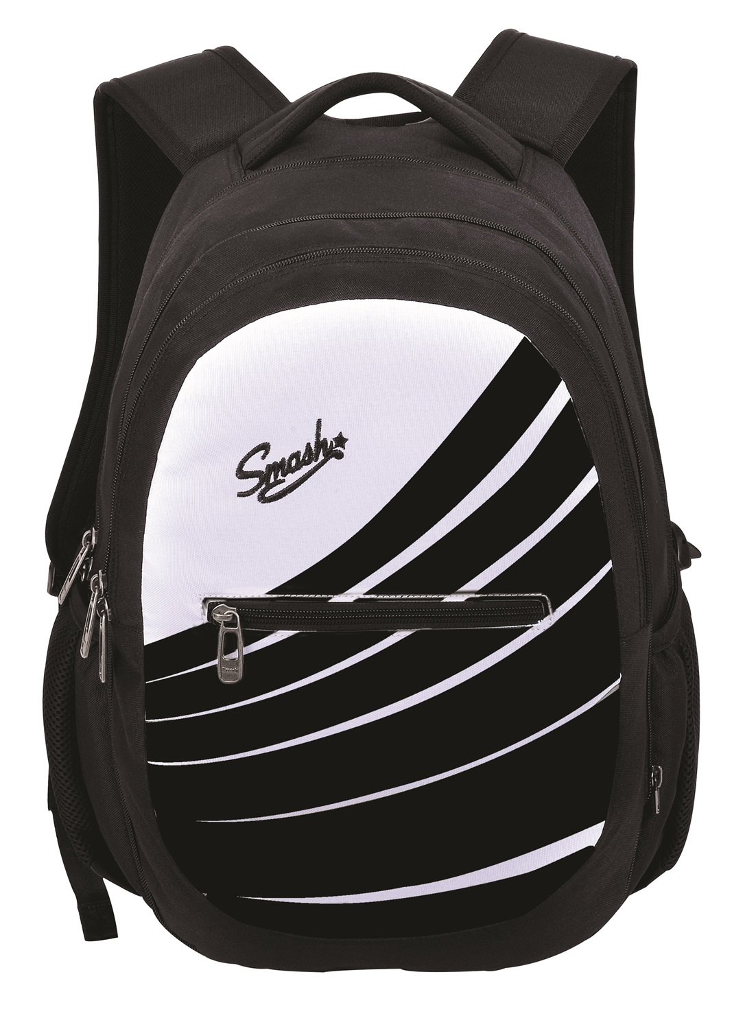 תיק גב אפנתי לנוער עם גב קשיח אורטופדי, ארבע תאי חלוקה, שני תאי צד ותא נגד גניבות - שחור לבן סמאש