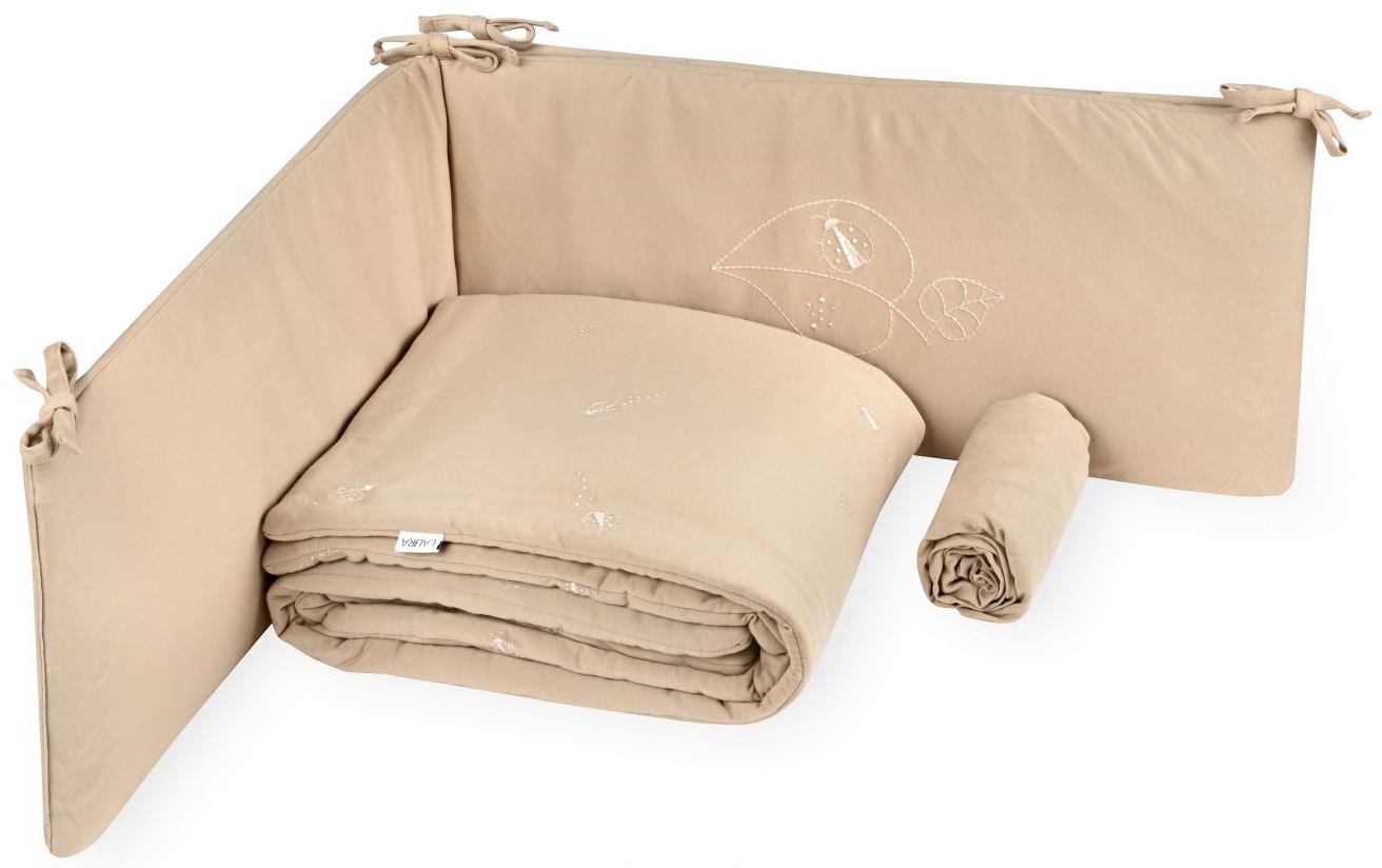 סט מצעים 3 חלקים למיטת תינוק מבד 100% כותנה עם רקמה EMB - חיפושית לורה סוויסרה