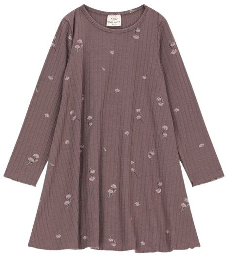 שמלה מסתובבת 100% כותנה מבד ריב מידה 5-6 שנים - חום פרחוני מיננה
