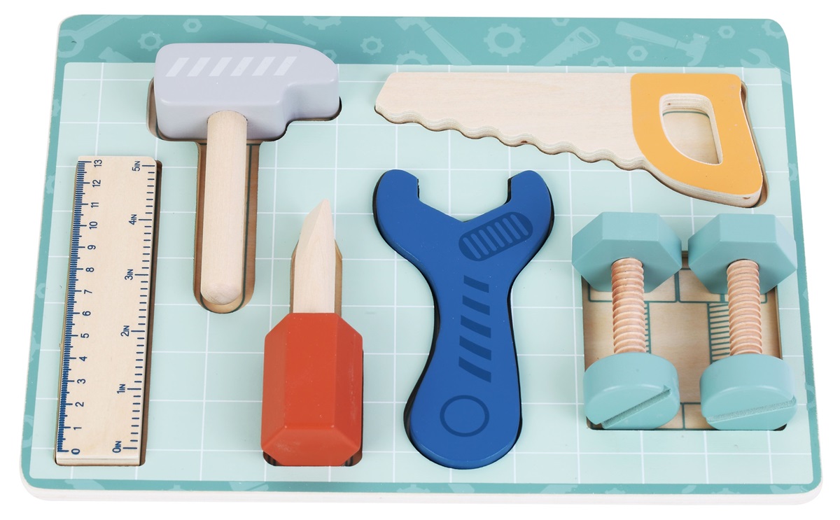 פאזל כלי עבודה מעץ למשחק עם מגש 8 חלקים פיט טויס