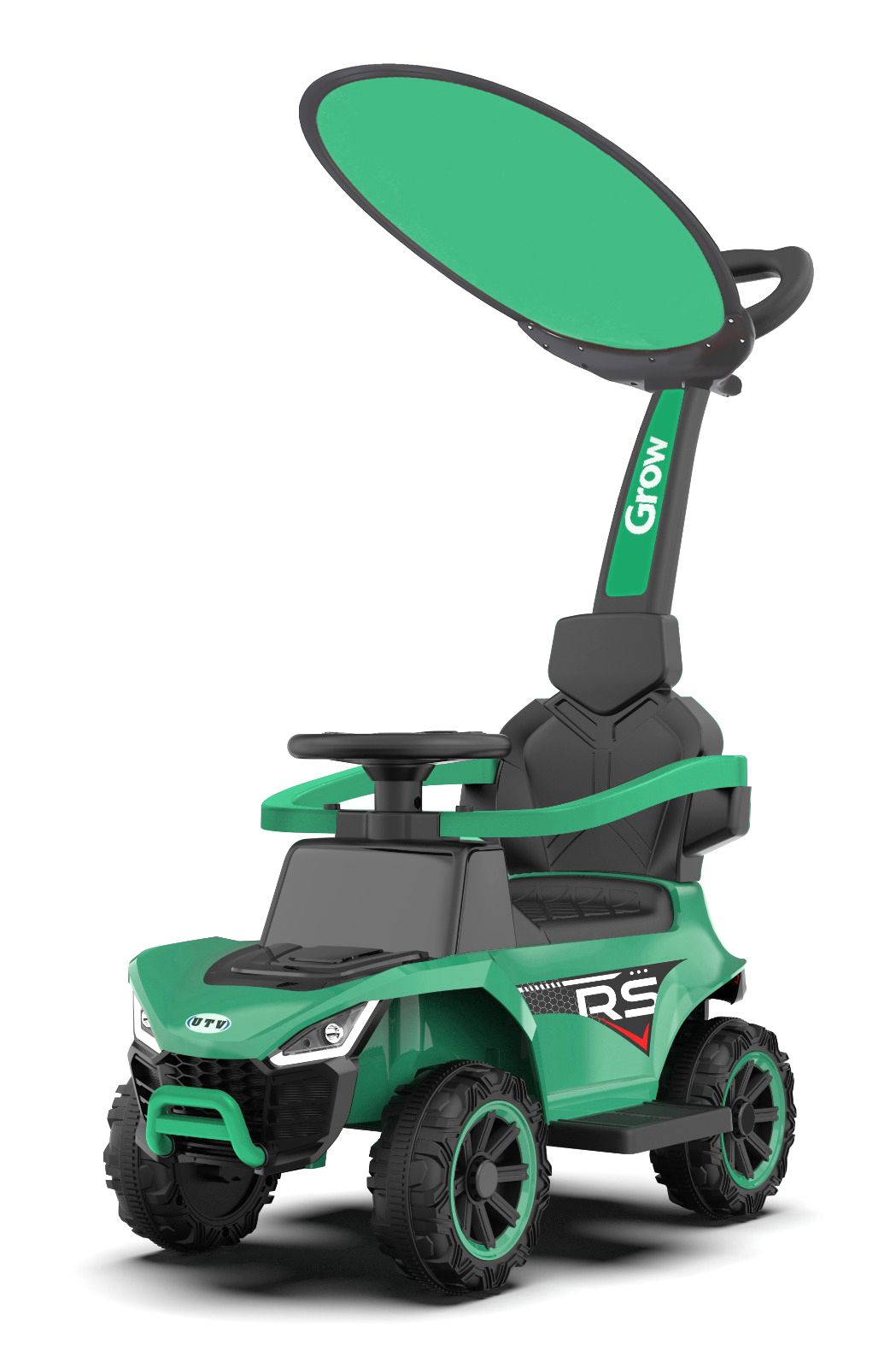 בימבה ג'יפ עם מוט דחיפה, אפקטים, תאורה וגגון - ירוק Grow