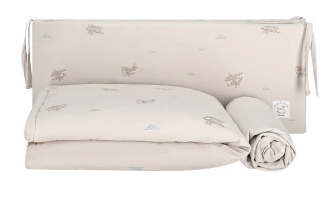 סט מצעים למיטת תינוק 3 חלקים 100% כותנה ג'רזי מקולקציית וינטג' - אבן מטוסים מיננה