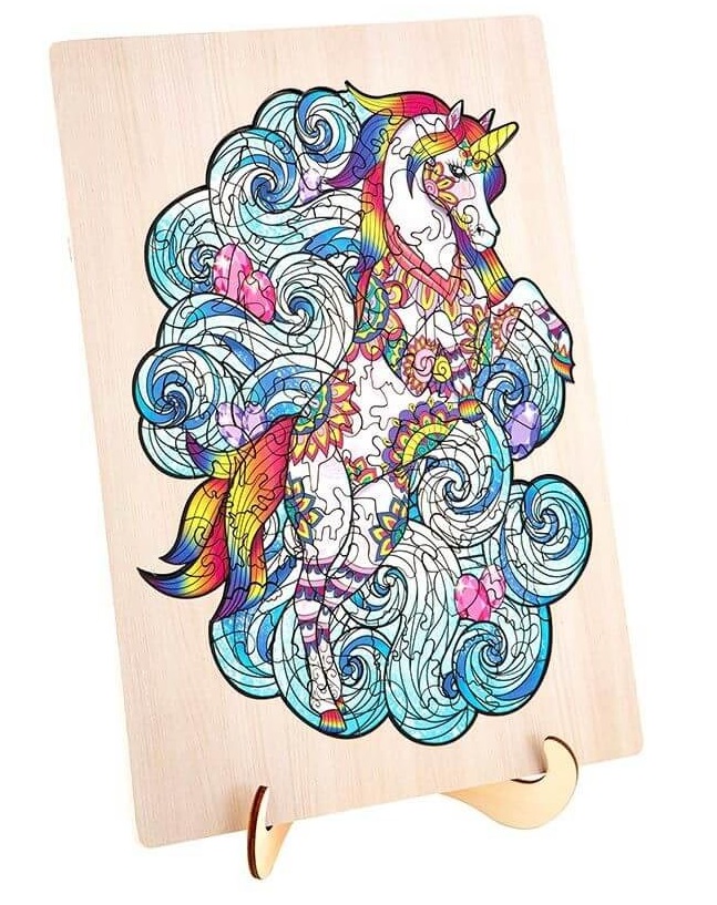 פאזל 129 חלקים מעץ עם מסגרת ומעמד - חד קרן Grafix