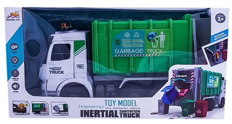 משאית אשפה ענקית 40 ס"מ אורות וצלילים עם 4 פחים צעצועי שירן