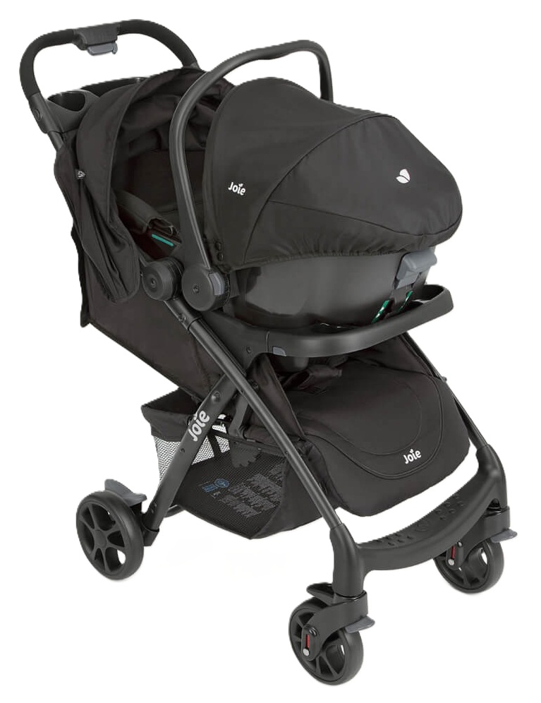 סט עגלת טיולון מגיל לידה i-Muze lX עם סלקל, מגש תינוק, מגש הורה - שחור ג'ואי