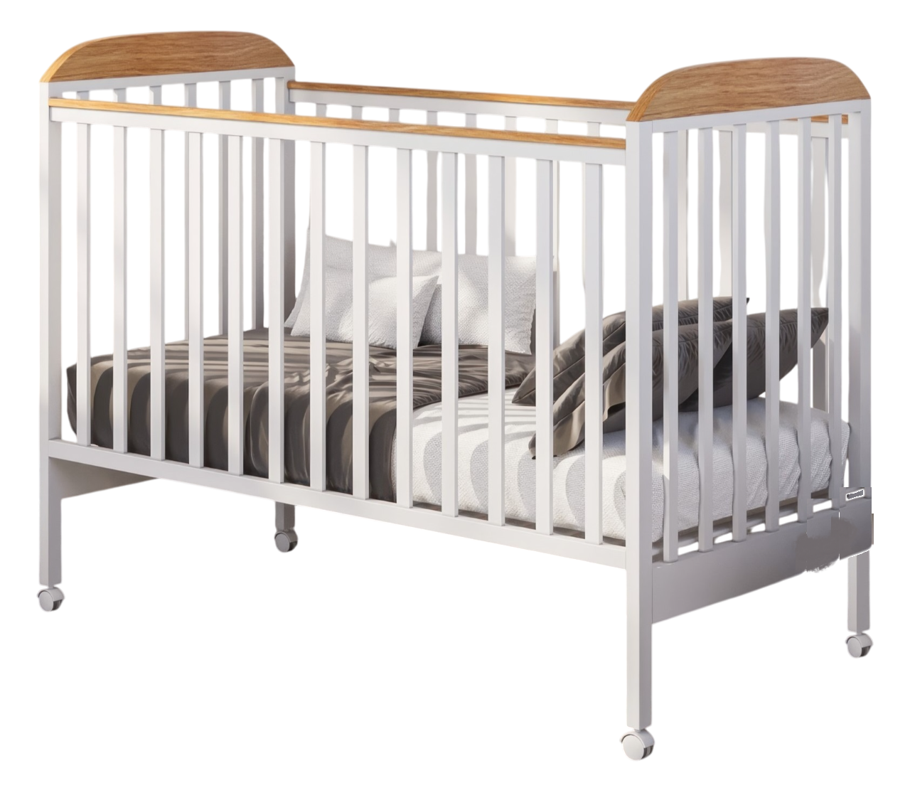 המעקה בצד המיטה (צד אחד) ניתן להעלאה ולהורדה ע"מ לאפשר גישה נוחה לתינוק