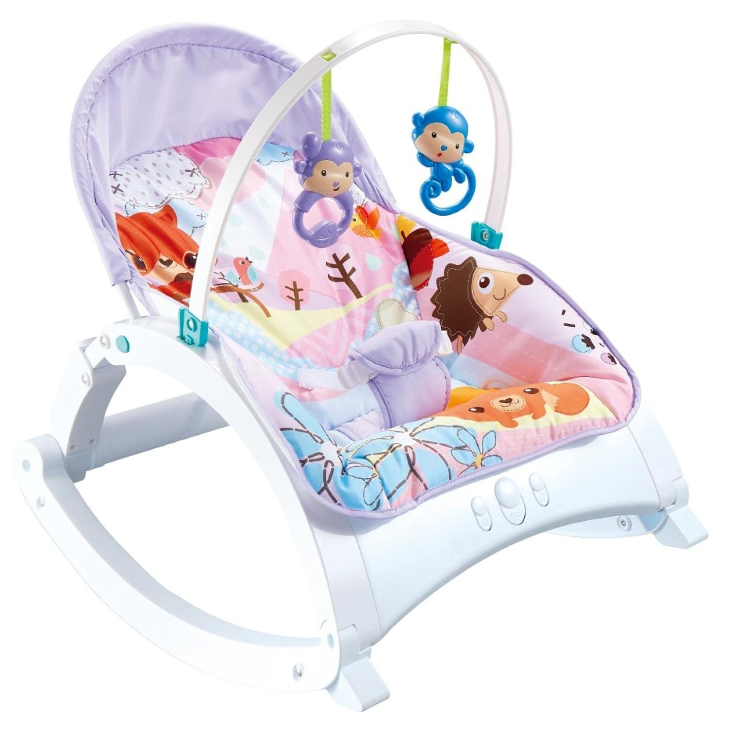 טרמפולינה מתקפלת לתינוק מלודי עד 18 ק"ג עם מנגנון רטט ומנגינות - סנאי ורוד בייבי מישל