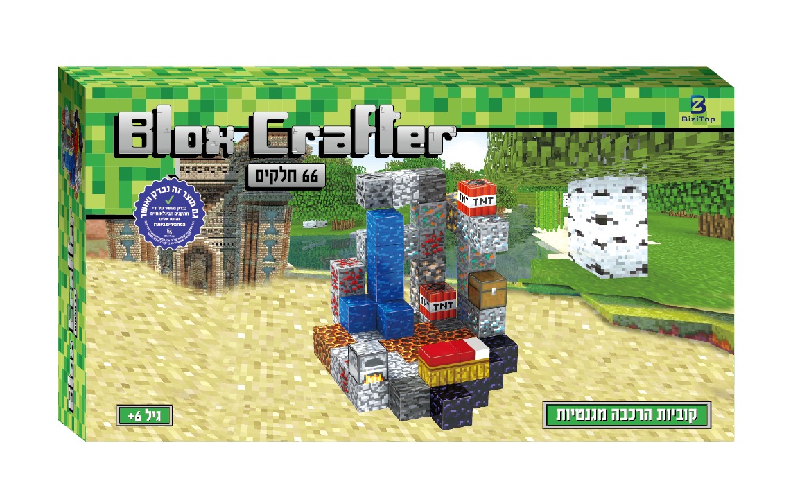 בלוק קראפט קוביות הרכבה מגנטיות כולל שתי דמויות להרכבה - 66 חלקים Bizi