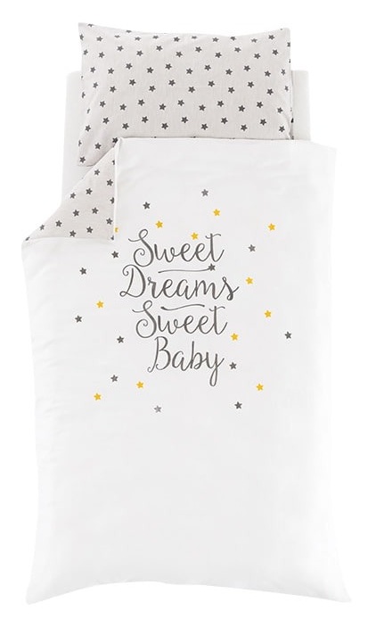 סט 5 חלקים 100% כותנה היפראלרגנית למיטת תינוק / מעבר (שמיכת חורף, כרית, ציפית, ציפה, סדין) - Stars Yellow Traumeland